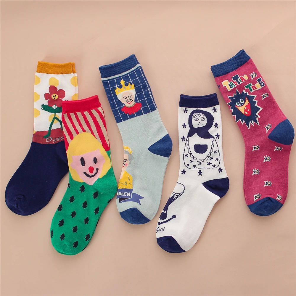 Милые забавные носки для девочек с изображением веселых цветов, королевы гримаса, Детские хипстерские уличные танцевальные носки для скейт...