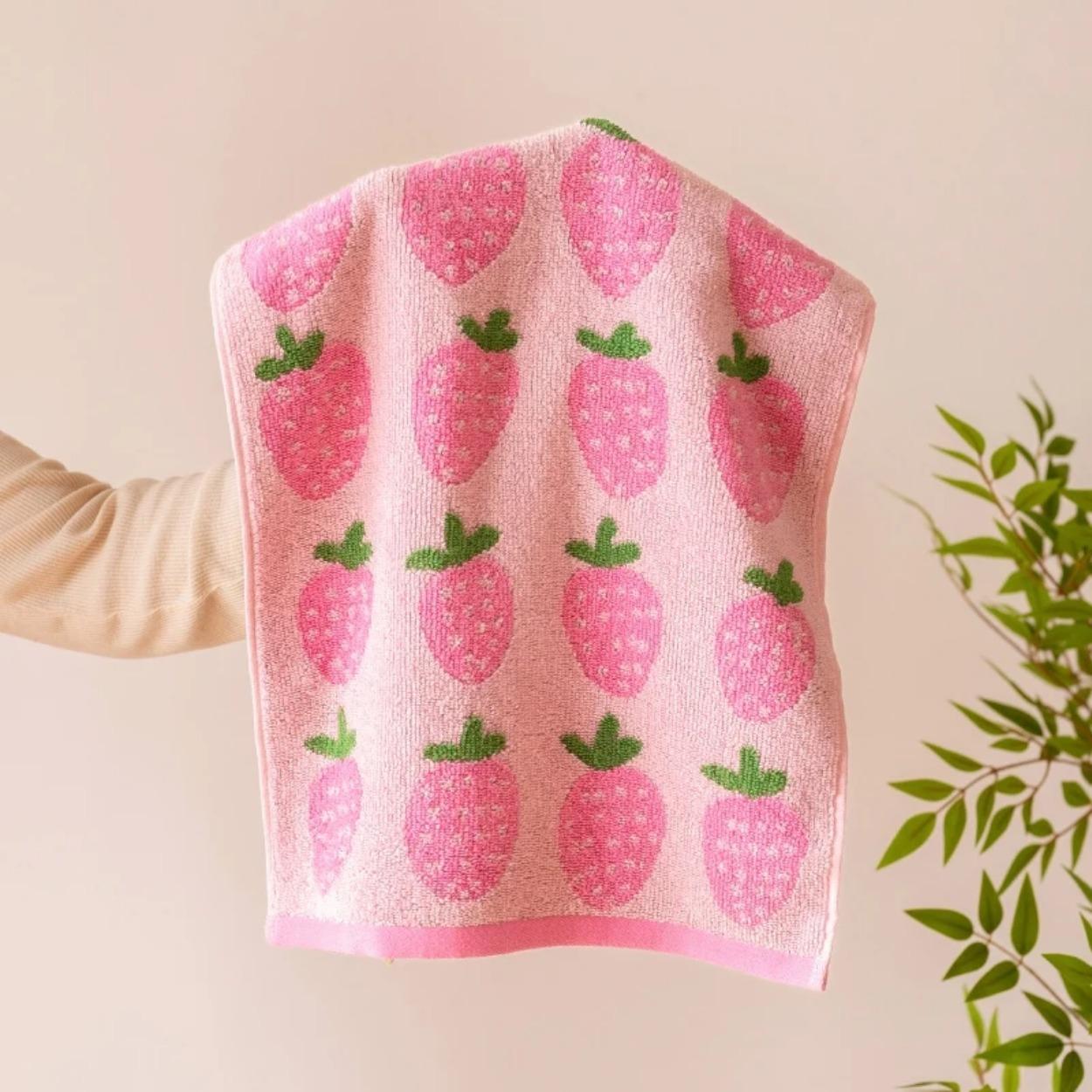 Милые клубничные утолщенные полотенца из чистого хлопка, милые цветочные мягкие полотенца для лица, как полотенце для взрослых, впитывающие бытовые полотенца для ванной 34x35cm 1pcs земляничный
