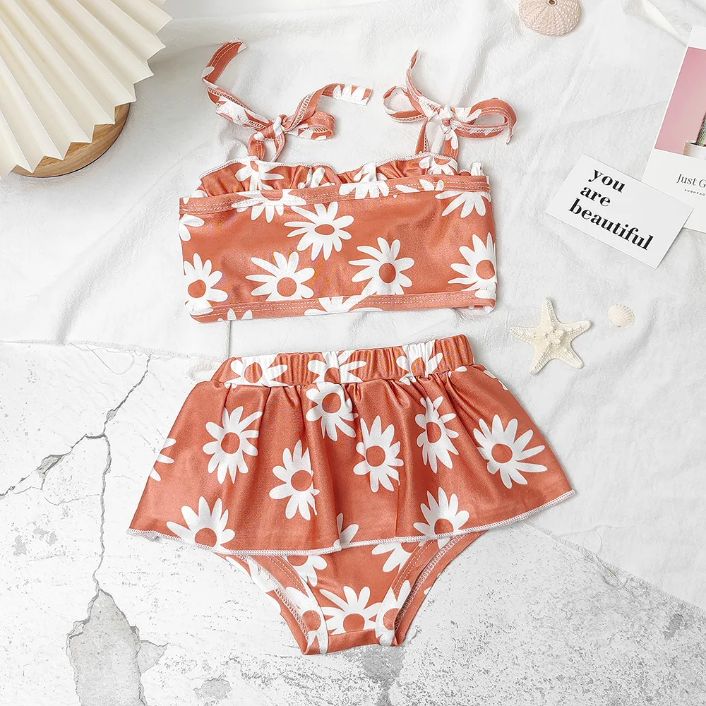 Милые купальники для девочек MILANCEL, купальник с цветочным принтом, милые майки для девочек и шорты, детские купальники для девочек