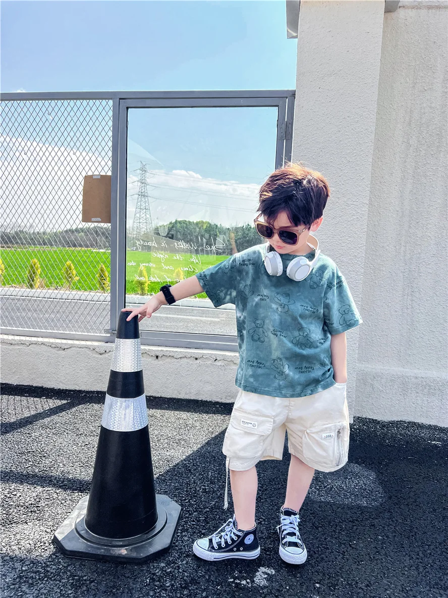 Милые модные топы с короткими рукавами и принтом в виде мишки и галстука-бабочки для девочек, универсальная свободная хлопковая Футболка дл...