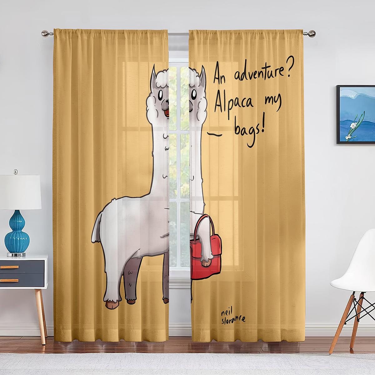 Милые мультяшные ламы, альпаки, животные, розовая прозрачная вуаль, занавеска для девочек, спальни, гостиной, кухни, окна, шифоновые тюль-шторы 1 PCS W100XH250cm&Grommet Top
