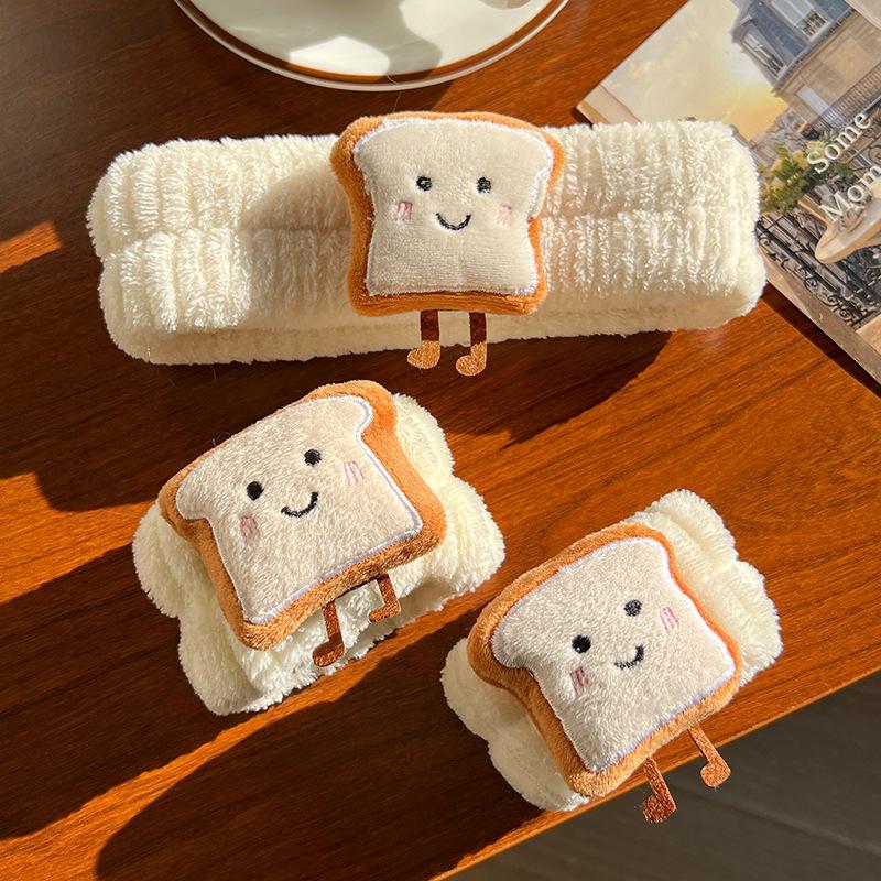Милые мультяшные тосты и рисовые шарики из фланели для умывания лица: Набор влагонепроницаемых, впитывающих резинок для волос на осень и зиму (3 куска)