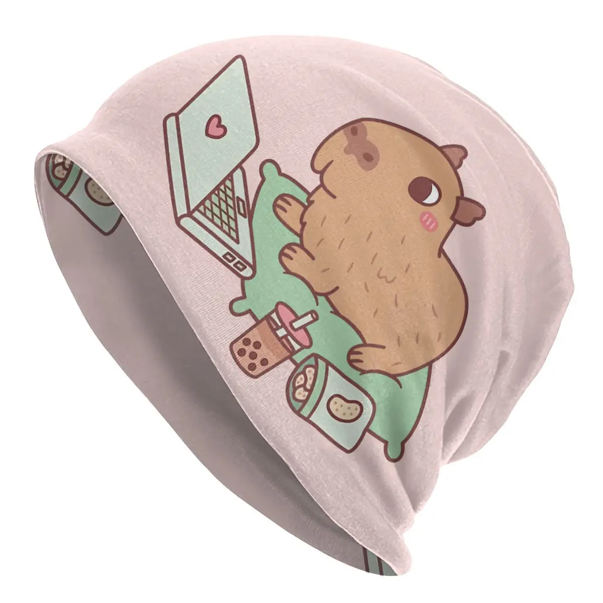 Милые мягкие облегающие шапочки с ноутбуком и закусками, мужские уличные тонкие шапочки, облегающие шапки