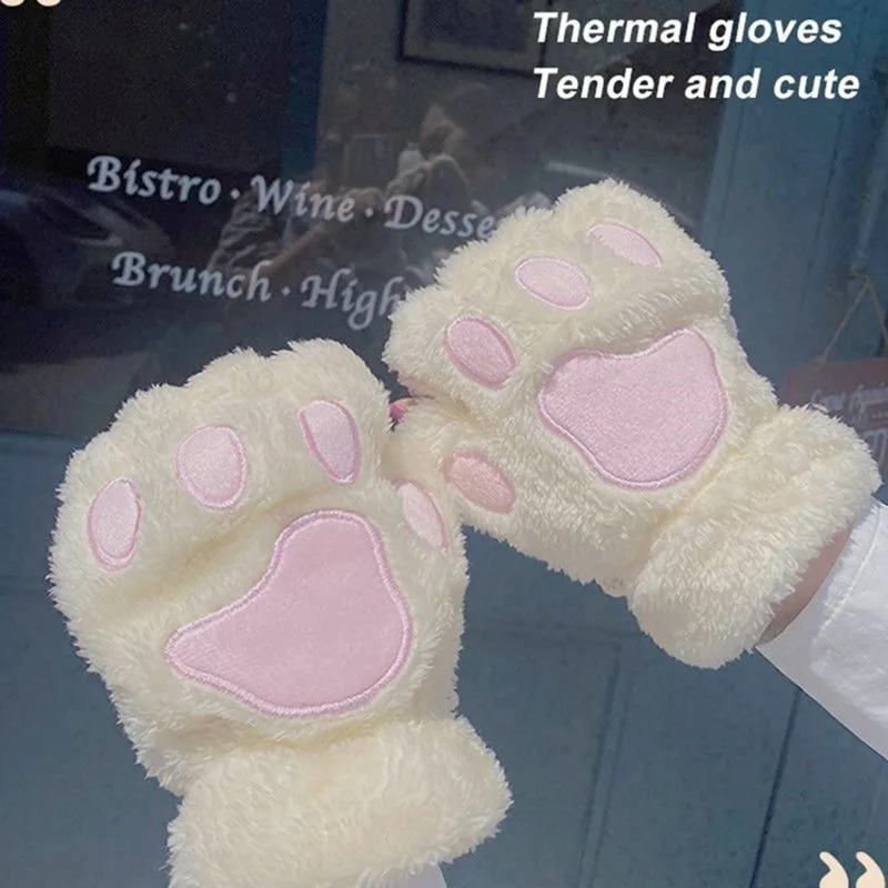 Милые перчатки без пальцев в виде кошки, искусственная кожа, теплые мягкие плюшевые перчатки без пальцев в виде панды, полупальцевые декора...