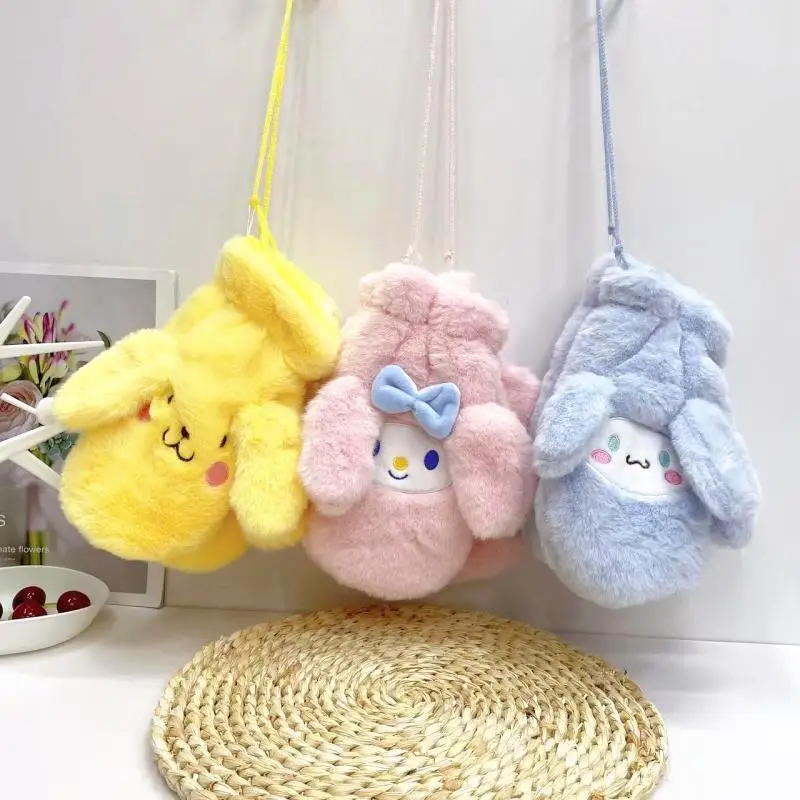 Милые плюшевые перчатки Sanrio Mymelody Cinnamoroll помпон пуриновые теплые перчатки 22 см Мультяшные плюшевые утолщенные ветрозащитные перчатки для ве...