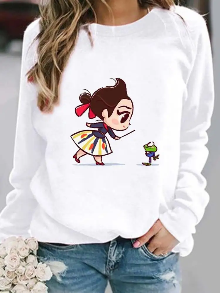 Милые пуловеры в стиле 90-х с акварелью и принтом принцессы, праздничный Женский Повседневный пуловер с мультяшным принтом, Женский свитшот с графическим рисунком на осень и весну