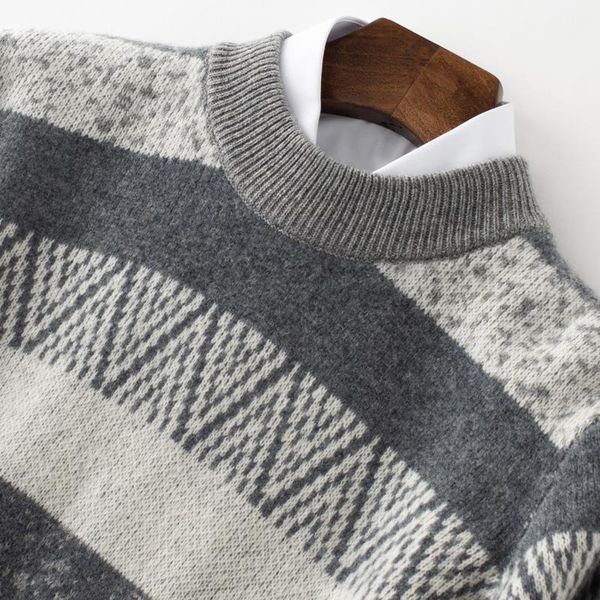 men's sweaters 100 pure merino wool sweater men striped pullovers winter thick warm long sleeve casual o-neck knitted pull homme, White;black