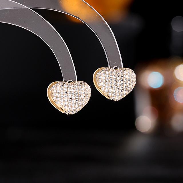 Милые милые серьги-сердечки для девочек, ювелирные изделия с микро-паве из кубического циркония, новые модные корейские массивные серьги-гвоздики с позолоченным покрытием белый