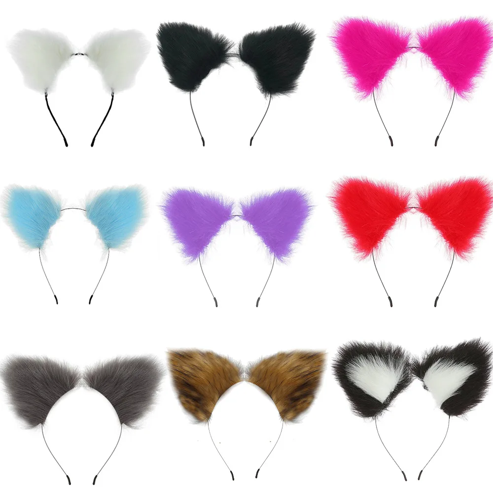 Милые сетчатые кружевные повязки для волос в горошек с кошачьими ушками простые однотонные Ленточные повязки для волос с бантом и лисьими у...