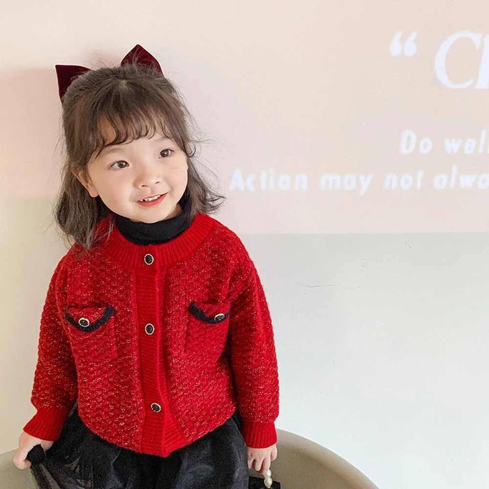 Милые теплые вязаные кардиганы для девочек, детские теплые свитера с карманами в стиле пэчворк для нового года, теплые пальто