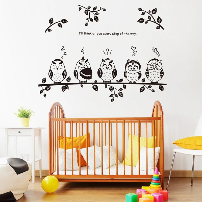 Милые фотообои с 5 совами на дереве, наклейки с бабочками, настенные фрески для детской комнаты, декор детской комнаты