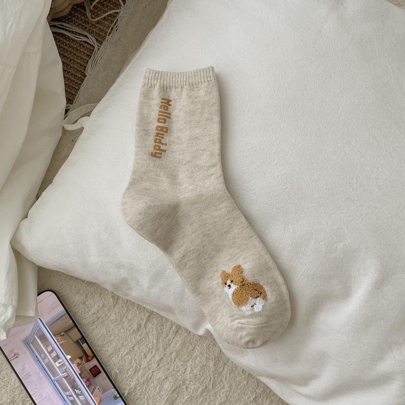 Милые хлопковые носки с рисунком щенка для девочек - однотонные носки средней длины в корейском стиле One Size покинуть белый