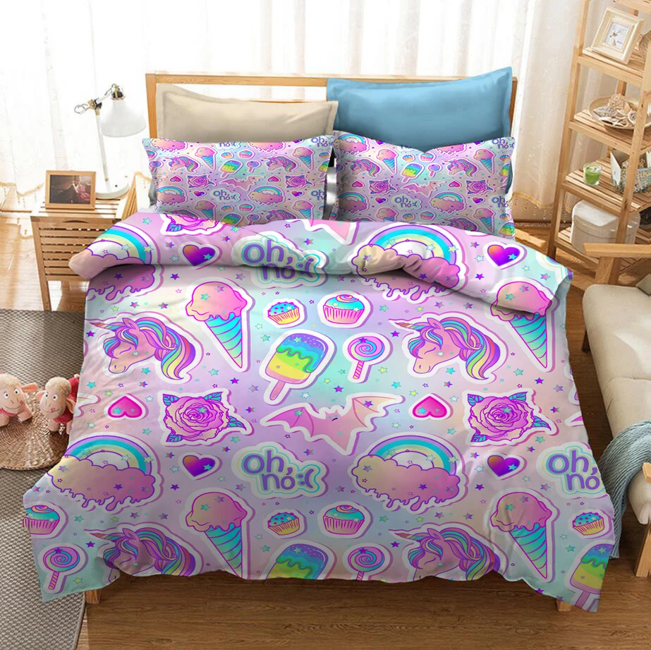 Милый Единорог мороженое мультфильм 3D печать одеяло комплект постельного белья для девочек пододеяльники наволочки Роскошная Королева Ко...