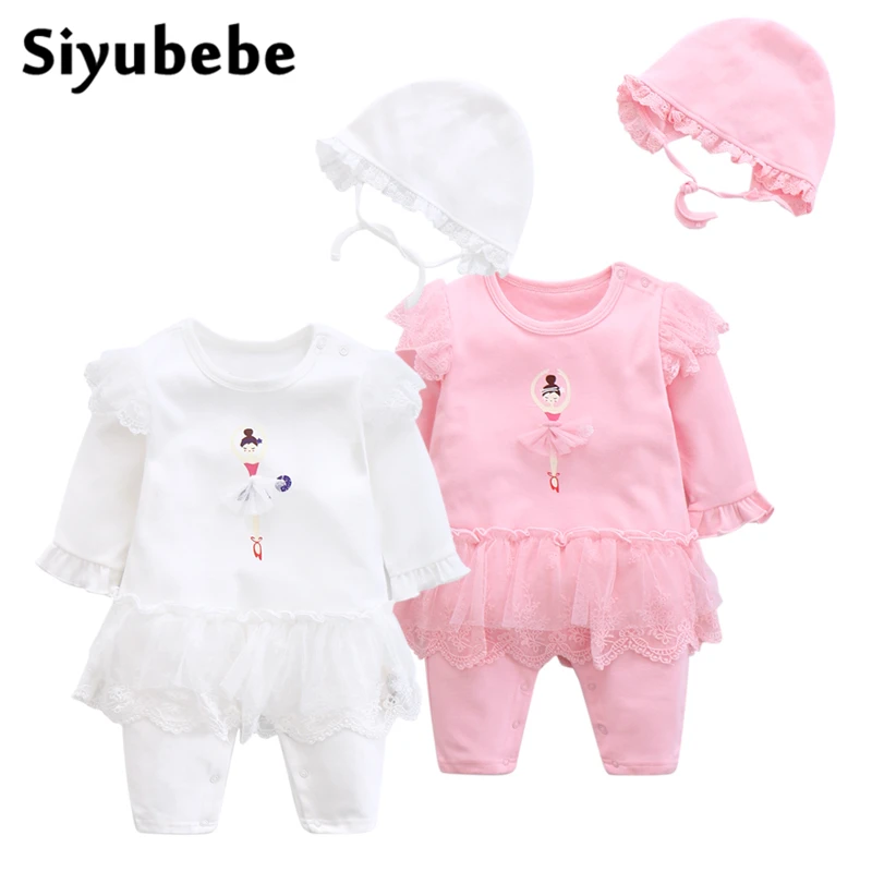 Милый балетный комбинезон для новорожденных девочек, хлопковые комбинезоны для маленьких девочек, кружевной комбинезон + шляпа, комплекты детской одежды, комбинезон с длинными рукавами для детей ясельного возраста