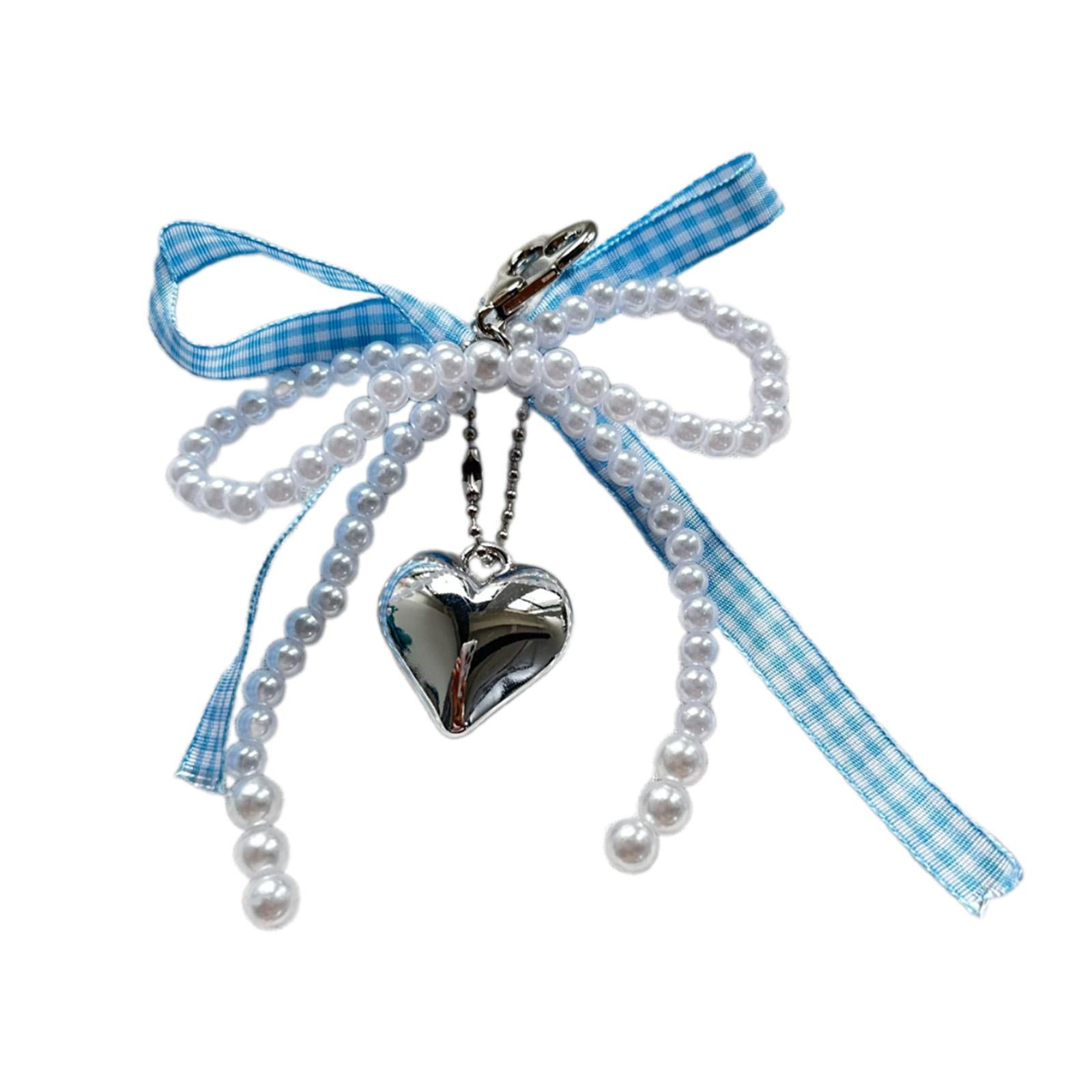 Милый брелок с жемчугом и бантом в виде сердца, кулон, милые подвески, украшения, брелок для ключей, подвеска для кошелька, сумки, рюкзака, сумки синий