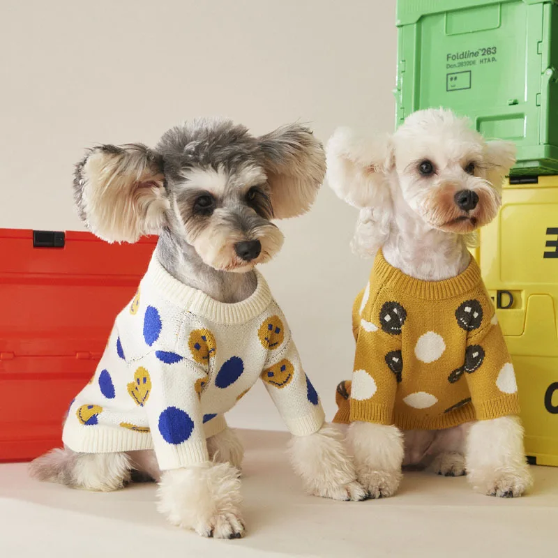 Милый вязаный свитер для собаки Kawaii улыбка в горошек: свитера с изображением собаки для малых и средних собак Одежда шнауцера зима щенок пал...