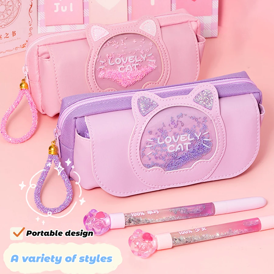 Милый женский карандаш, Фотосумка для хранения, косметичка большой емкости с головой кошки Luckly, канцелярские принадлежности в Корейском стиле, школьные принадлежности