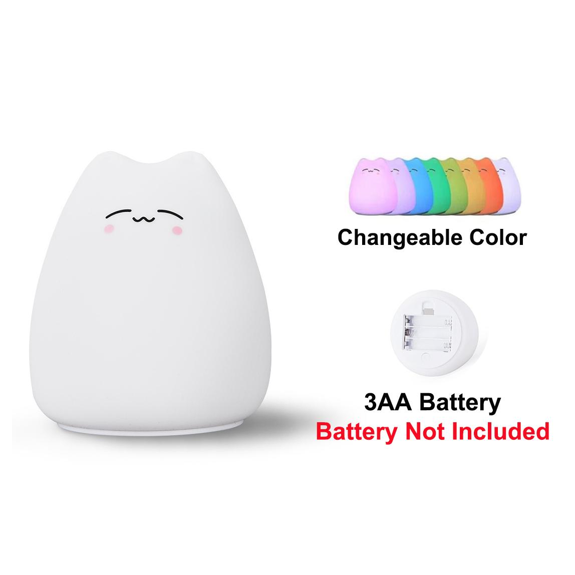 Милый кошачий ночник для детей мультфильм 7 цветов силиконовый спальный светильник сенсорный настольная лампа для украшения дома спальня