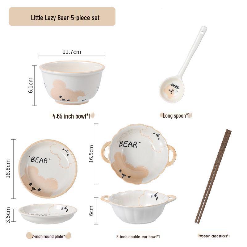 Милый кремовый керамический набор из миски и тарелки: Стильная подглазурная посуда для риса и овощей