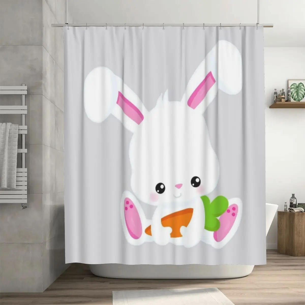 Милый кролик, белый кролик, маленький кролик, занавеска для душа 72x72 дюйма с крючками, персонализированный узор, защита конфиденциальности