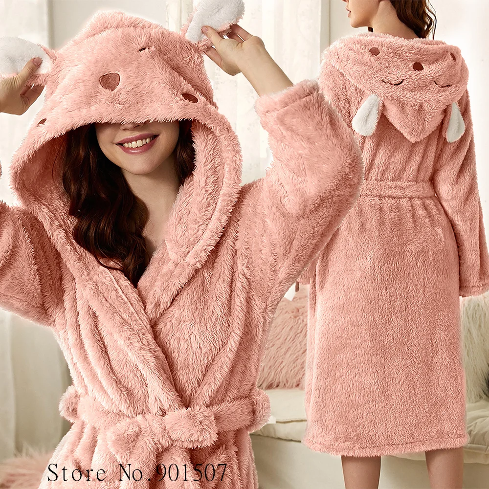 Милый мультяшный Халат с капюшоном, женская одежда для сна из кораллового флиса, женская зимняя теплая ночнушка, детская одежда для сна