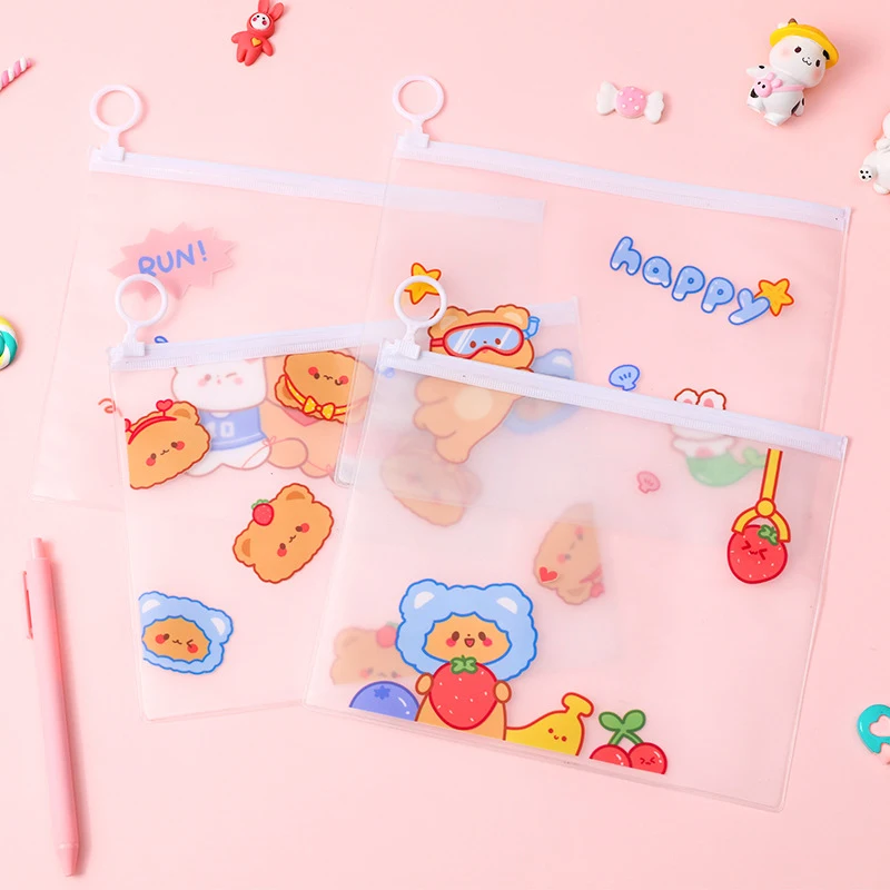 Милый мультяшный медведь, 4 шт., сумка для хранения файлов, канцелярские принадлежности, карандаш, прозрачная Водонепроницаемая карманная папка большой емкости на молнии