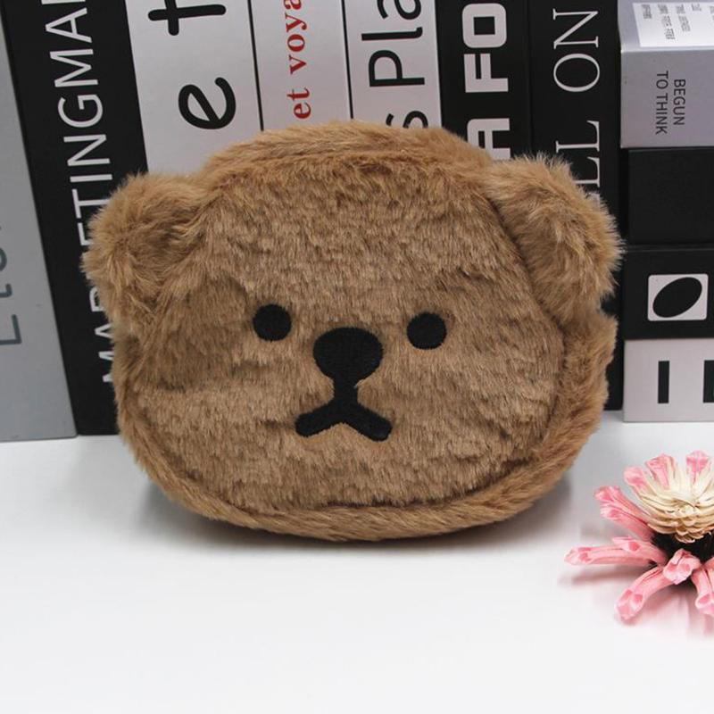 Милый мультяшный плюшевый кошелек с медведем, кошелек для монет, креативный портативный плюшевый мешок для монет, сумка для наушников, помада, сумки для хранения мелочей, сумки для карточек кофейный