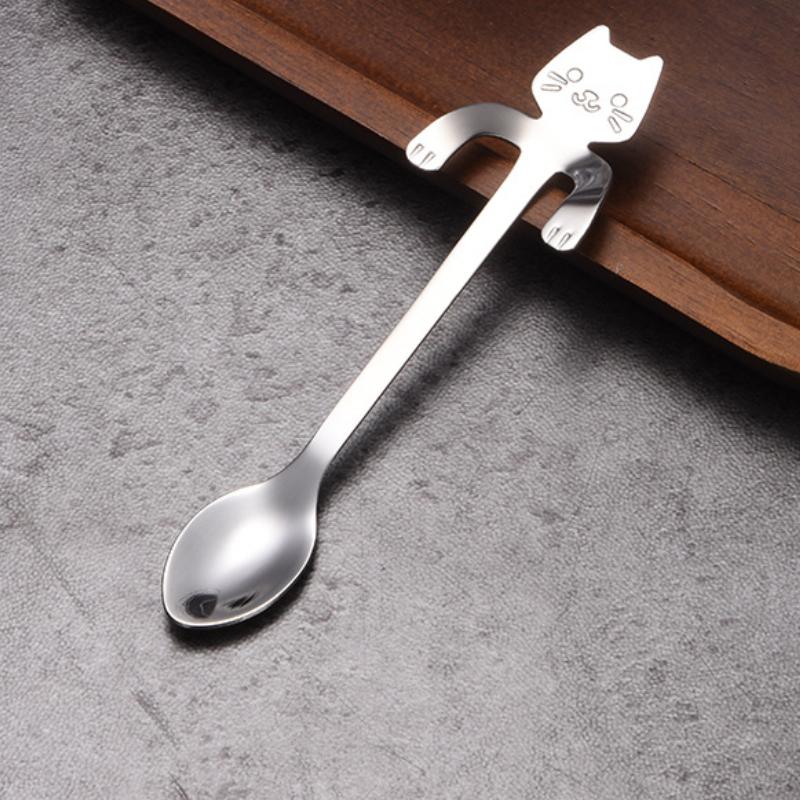 Милый набор чайных ложек из нержавеющей стали в форме кошки в серебряном и золотом цвете — идеально подходит для кофе, чая и десертов 1PC серебряный