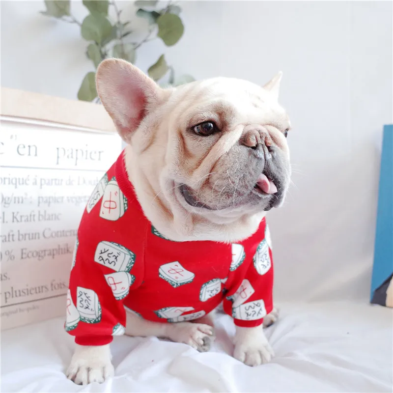 Милый праздничный красный свитер для китайского Маджонга, одежда для собак, бульдог, шнауцер, наряды для собак, толстовка с капюшоном
