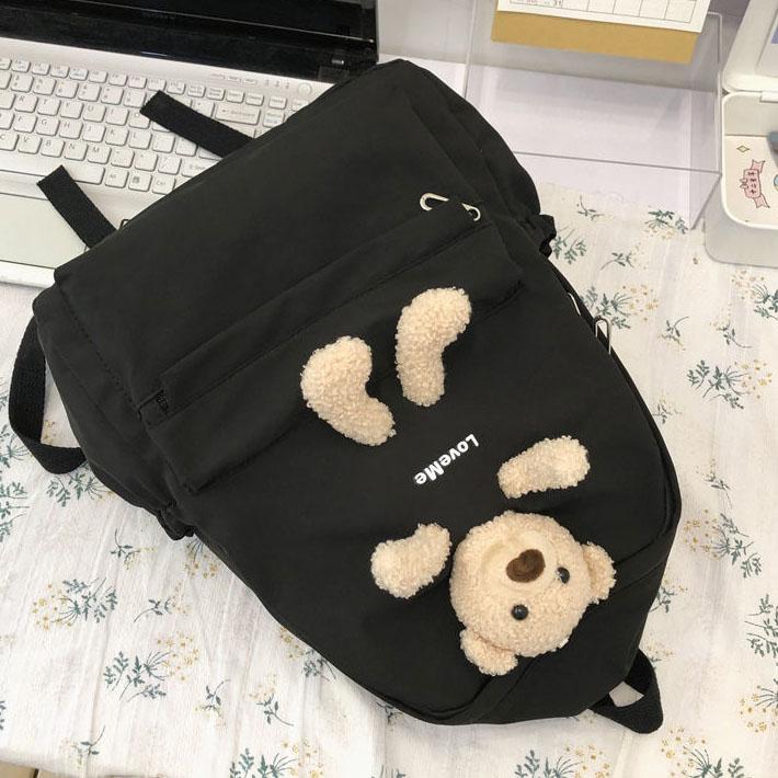 Милый рюкзак с мультяшным медведем для девочек, контрастный цвет, противоугонная сумка на плечо, универсальная школьная сумка для девочек-подростков, водонепроницаемый школьный рюкзак 30*12.5*40.5cm чёрный