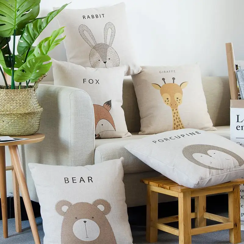 Милый чехол для подушки с героями мультфильмов, Очаровательное животное, кролик, жираф, Лев, морской медведь, лиса, наволочка для детской комнаты, украшение