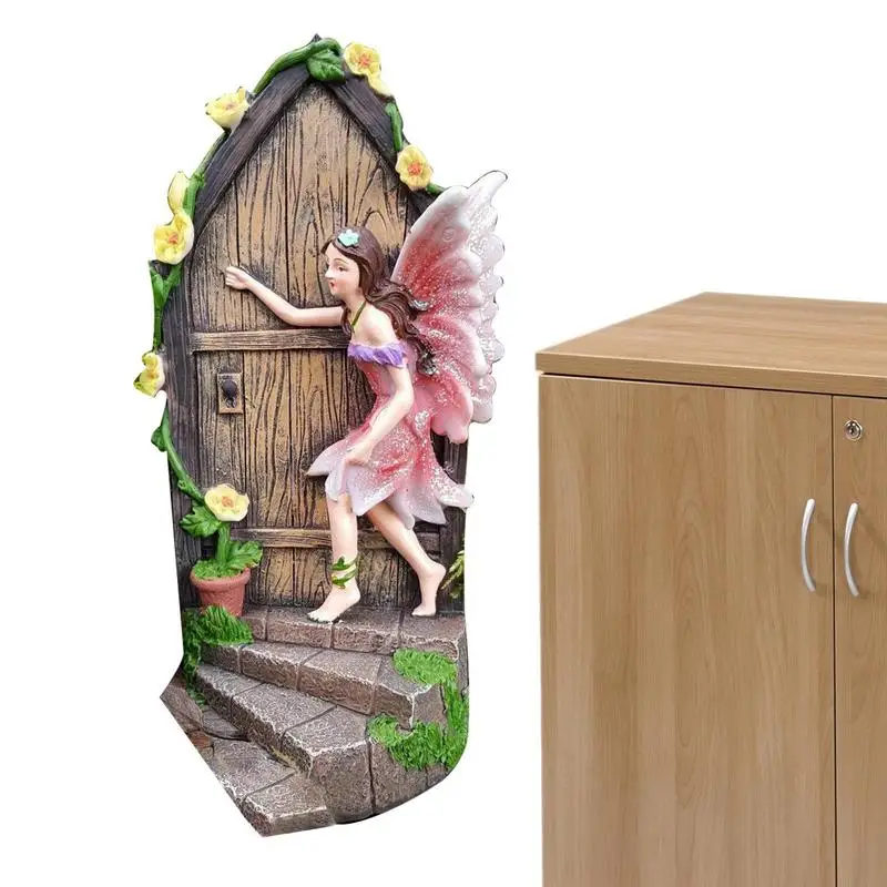 Миниатюрная статуя двери, декоративная сказочная дверь из смолы, подвесное украшение для дерева, сада, Сказочная уличная скульптура