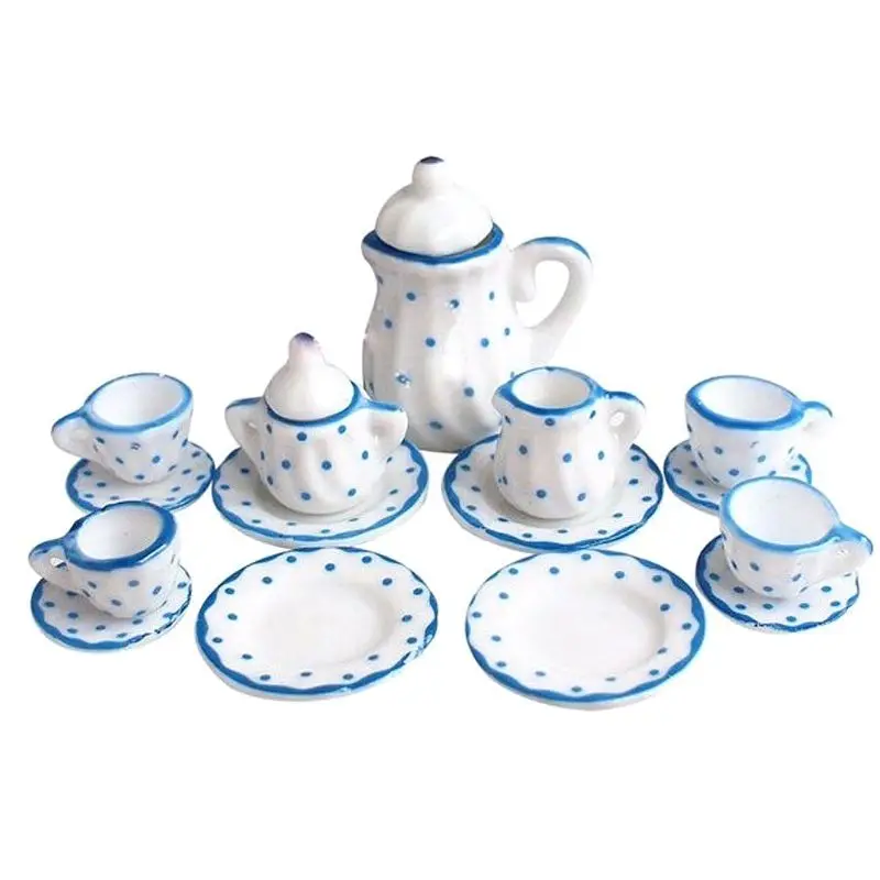 Миниатюрный фарфоровый чайный набор Q0KB, 1: 12 игрушек, 15 шт. синих цветов, имитация кукольного домика De