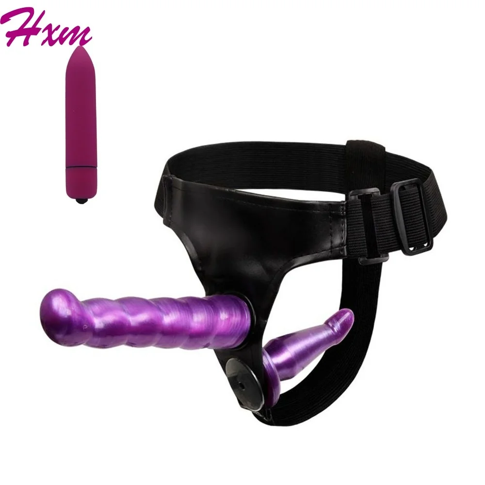 Мини-вибратор-пуля и эластичный ремень на двойной Дилдо страпон взрослые секс-игрушки для женщин лесбиянок