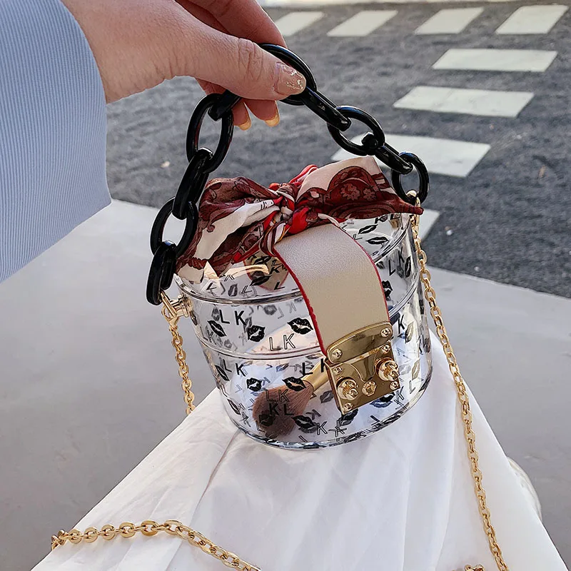Мини летняя Милая Прозрачная Круглая коробка маленькая дамская сумочка 2020 новая акриловая цепочка-ведро jelly wrap tide