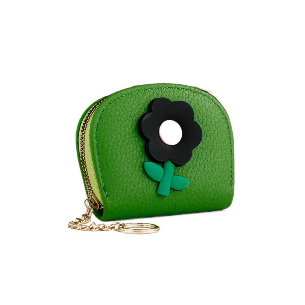 Мини-органайзер для карт с цветочным дизайном, 11 слотов, кошелек на молнии для монет, милый многослотовый кошелек для мелочи для девочек зелёный