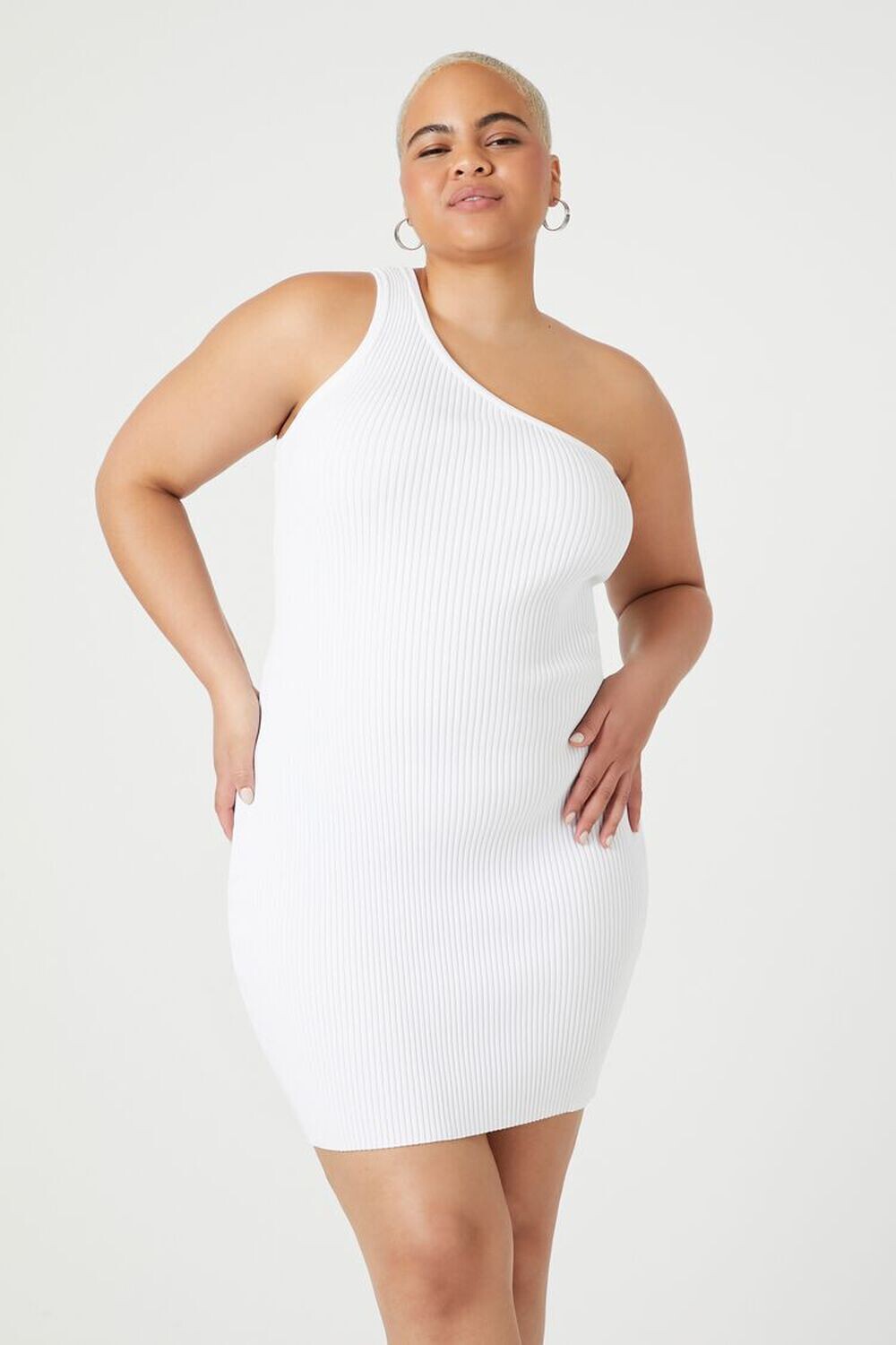 Мини-платье больших размеров на одно плечо Forever 21, белый