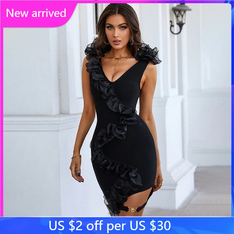 Мини-платье женское Сетчатое без рукавов с глубоким V-образным вырезом