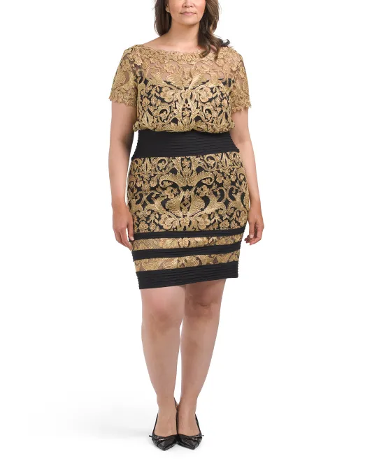 Мини-платье с короткими рукавами и вышивкой Plus Made In USA Tadashi Shoji, золотой/черный