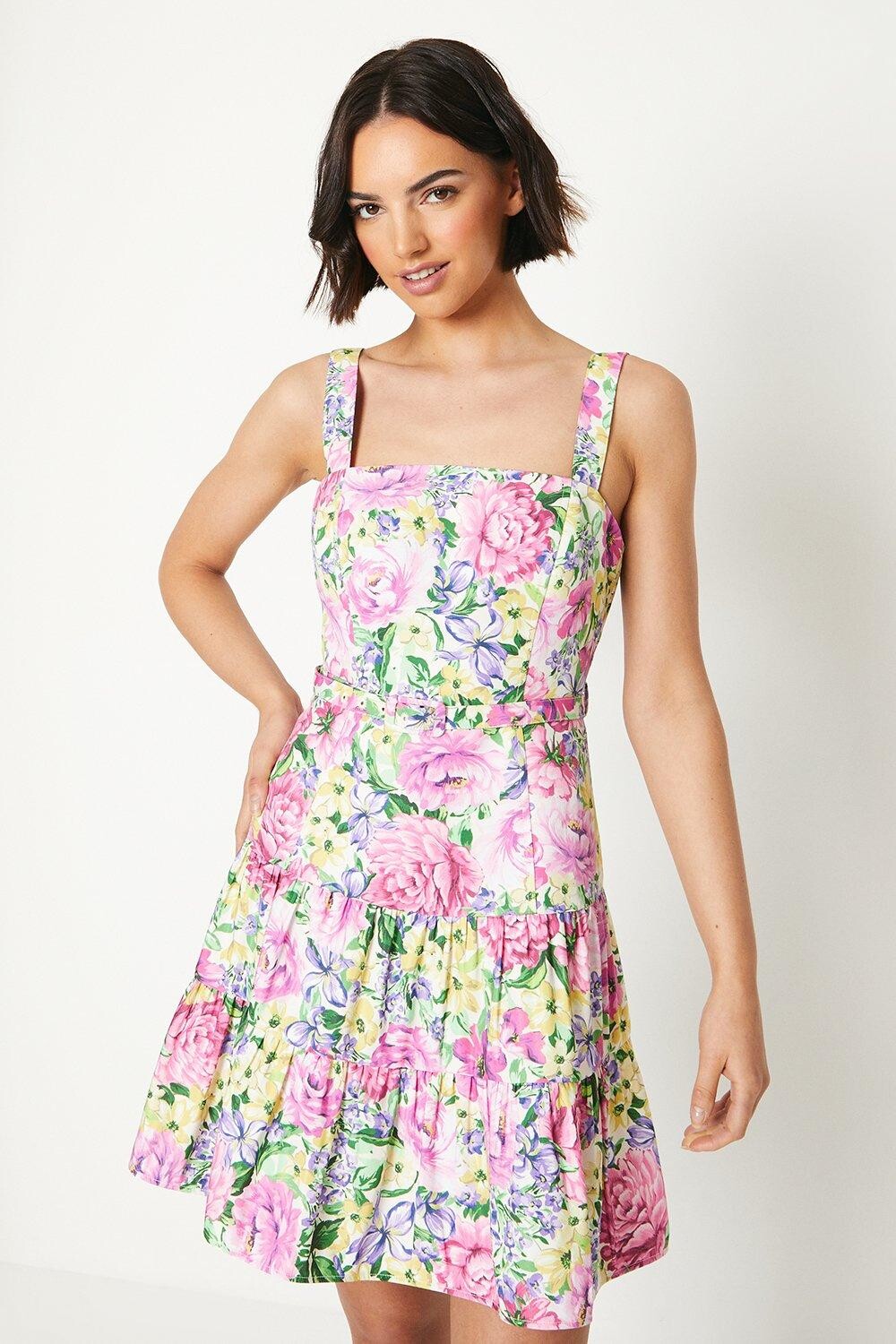 Мини-платье с поясом и цветочным принтом Oasis, мультиколор