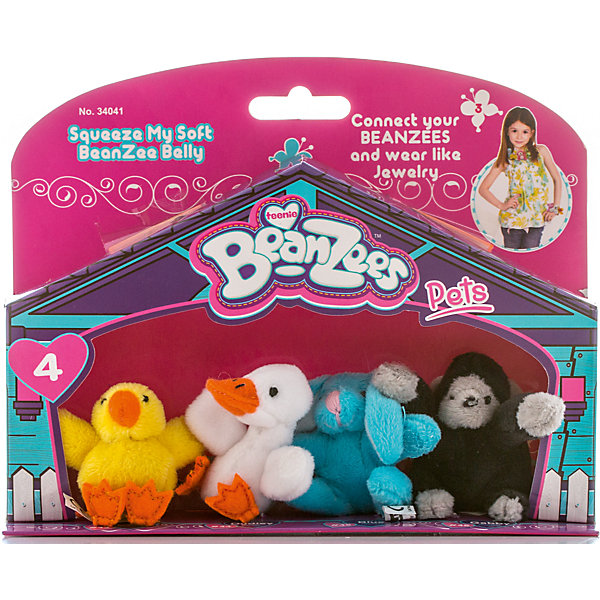 Мини-плюш в наборе "Цыпленок, Утенок, Кролик, Горилла" от бренда Beanzeez можно купить в нашем интернет-магазине.
