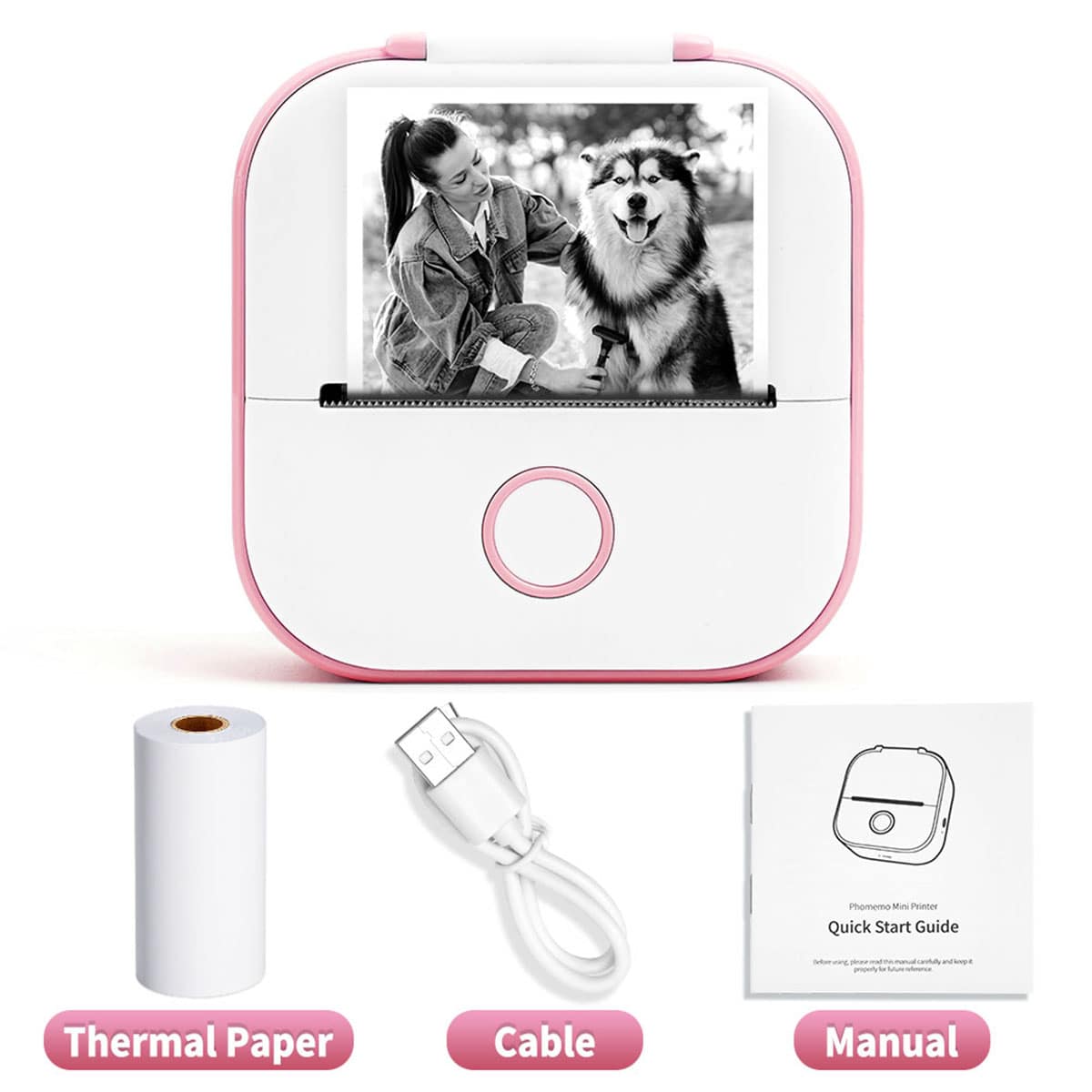 Мини-принтер для наклеек Phomemo T02 Термопринтер Портативный карманный телефон без чернил Совместимость с Android iOS Мгновенная печать Веселье розовый