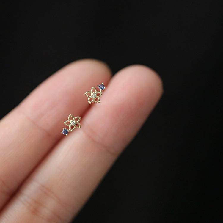 Мини-серьги-гвоздики из стерлингового серебра 925 пробы с маленькими синими цветами, простой универсальный дизайн, серьги в виде пятиконечной звезды для женщин 925