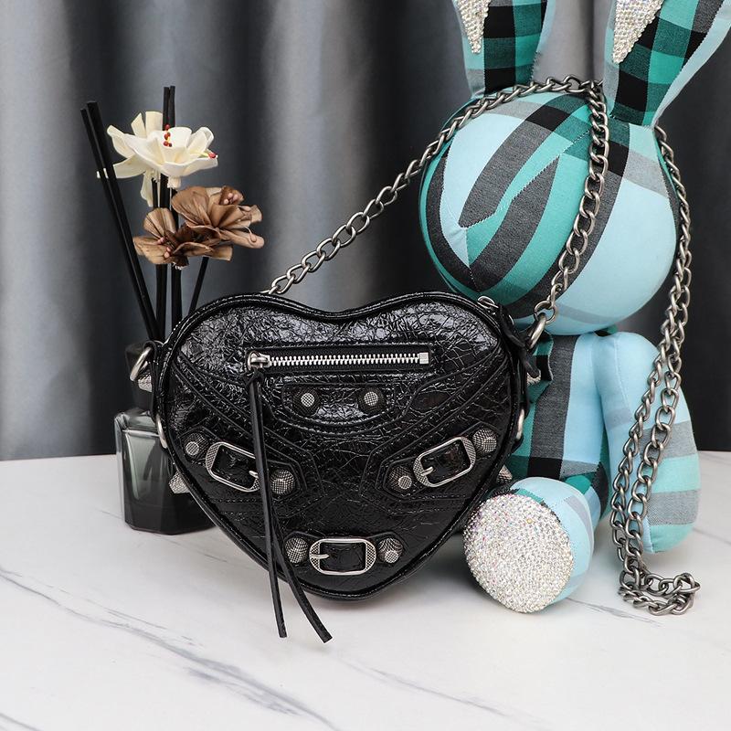 Мини-сумка Love Bag, милая, крутая, пряная, для девочек, стильная сумка-локомотив с заклепками, женская сумка из натуральной кожи с диагональной цепочкой и цепочкой чёрный