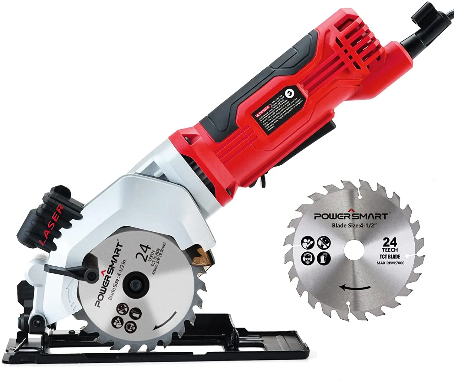 Мини-циркулярная пила PowerSmart, компактная циркулярная пила 4Amp 24T 4-1/2 дюйма, 3500 об/мин, маленькая циркулярная пила с металлической настенной пластиной