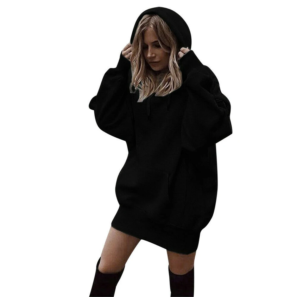Autumn Winter With Pocket Loose Tops Casual Women Hoodies Oversized Fashion Solid Color Daily Long Sleeve Warm Polyester