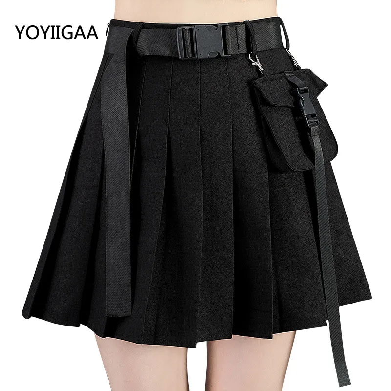 Мини-юбка женская летняя, трапециевидная, с завышенной талией и карманами