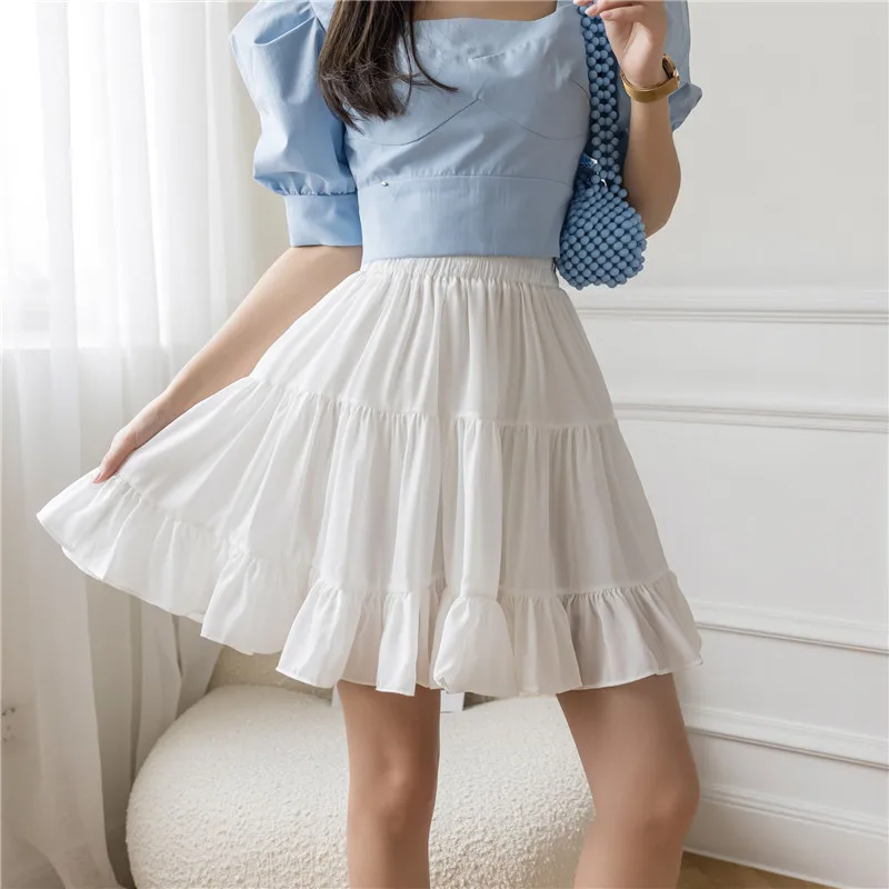 Мини-юбка женская трапециевидная с цветочным принтом, элегантная эластичная юбка с оборками и завышенной талией, повседневная короткая, дл...