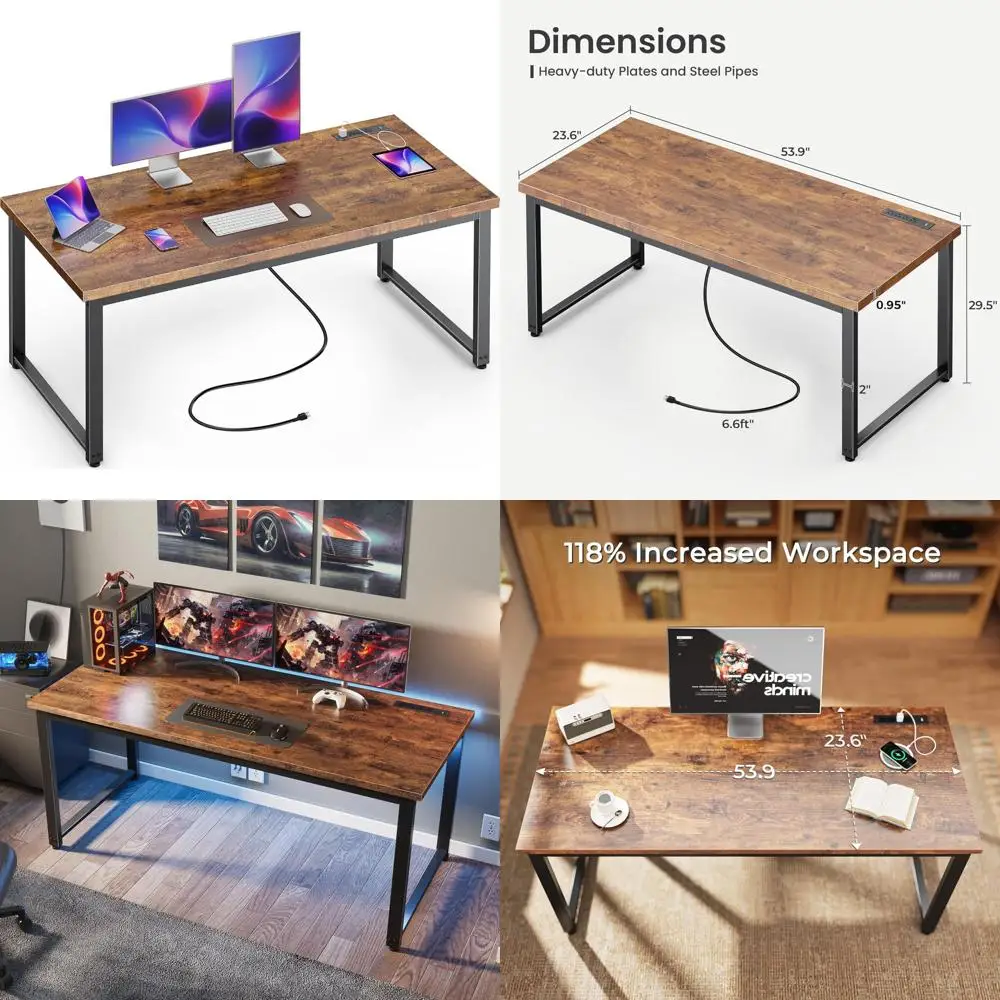 55x24 Inch Desk with Power and USB-C Outlets, Sturdy Metal Frame, Deep Thicker Top for Heavy-Duty Use