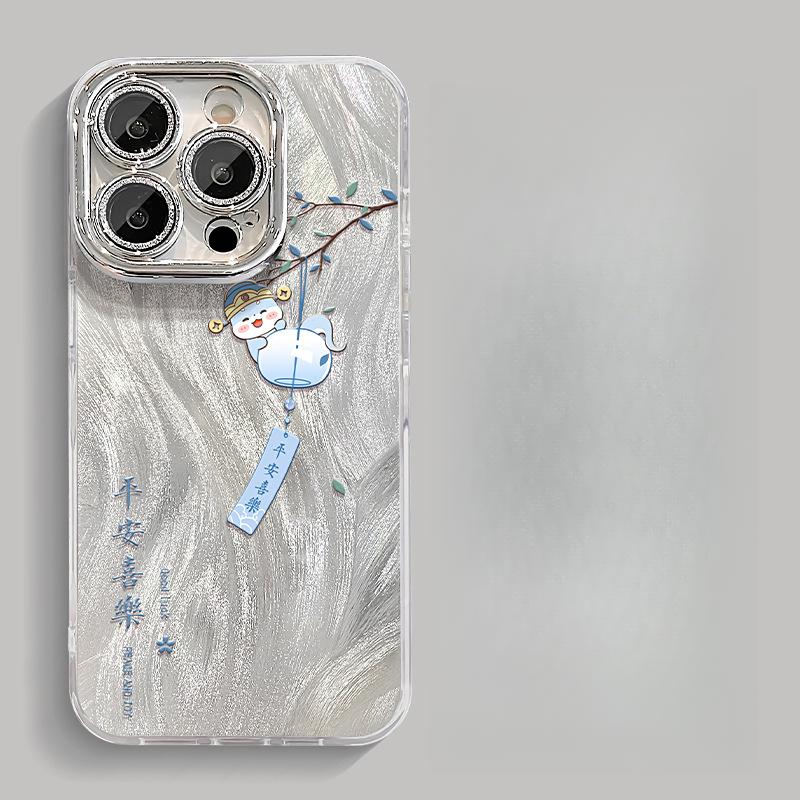 Мирная Радость Колокольчик Ветра Змея Подходит Для Apple 16 Перо Пряжа Мобильный Чехол 15pro Полностью Включающая Защитная Пленка для Объектива 14 Креативный Китайский Стиль X iPhone 15 Pro